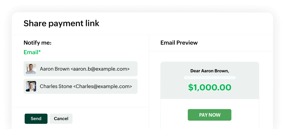 Get instant payment notifications and live tracking of the invoice statuses for easy follow-up.