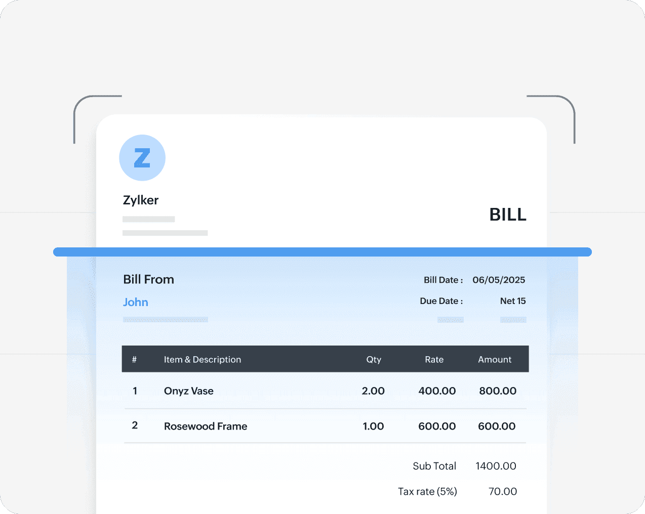 Record goods/services received and convert them instantly to bills.