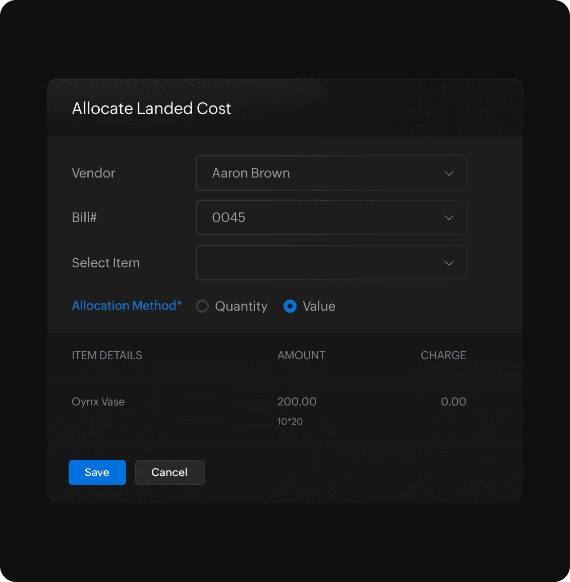 Calculate the true cost incurred in procuring items, add landed costs like freight, shipping, customs, and more to your bill. Ensures accurate pricing without losing margin.