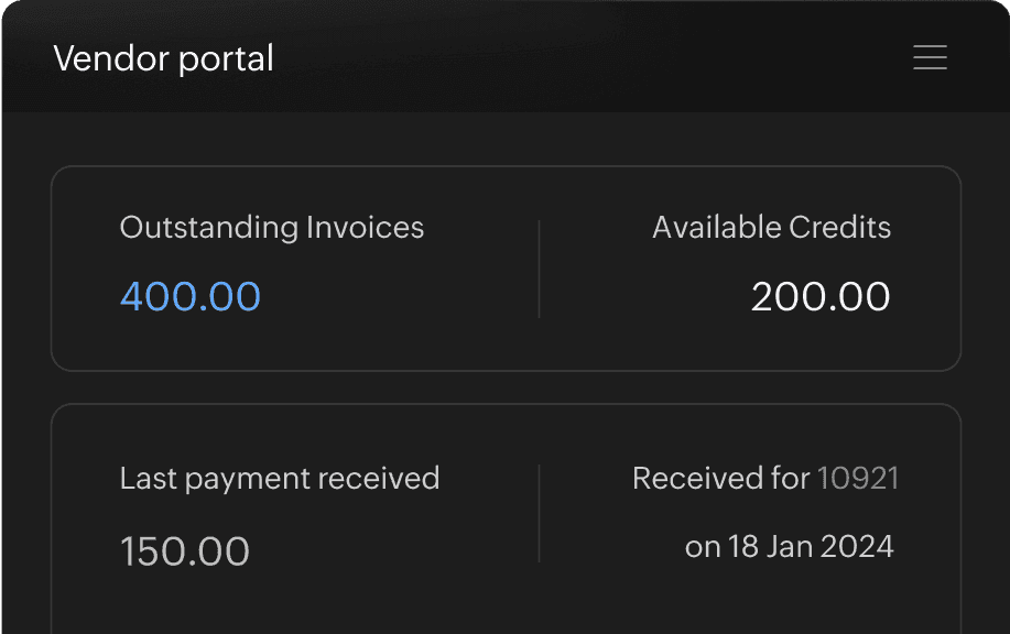 Invite multiple users, including accountants, to Zoho Books. Offer your customers and vendors dedicated self-service portals. Enjoy simplified and secure collaboration with Zoho Books.