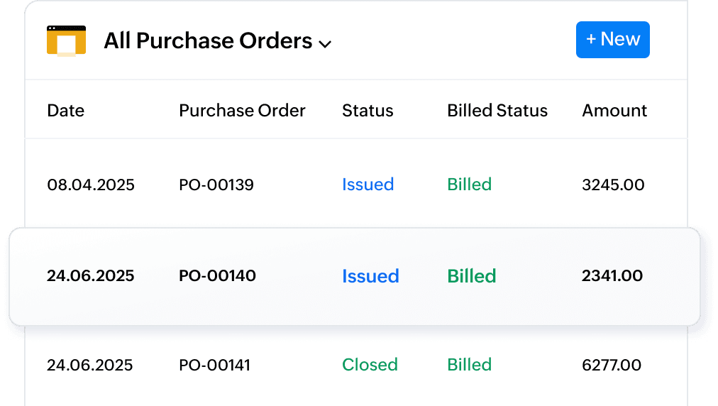Create purchase orders in minutes, stay on top of your order history and turn them into bills effortlessly using Zoho Books.