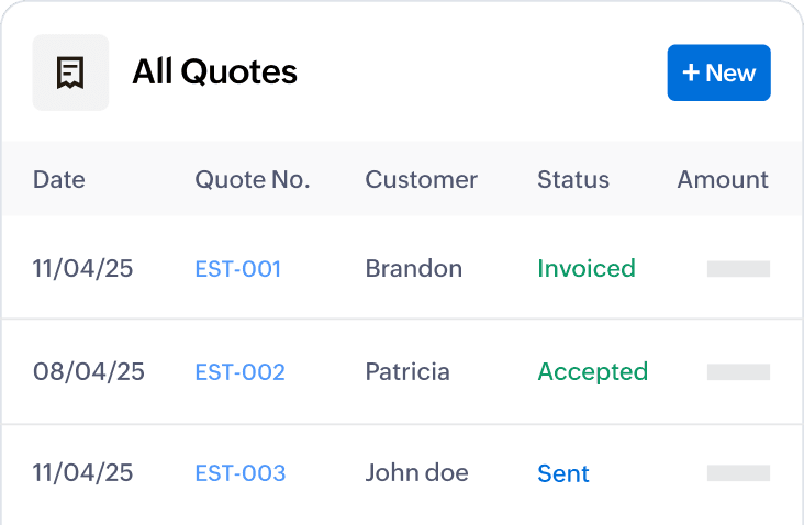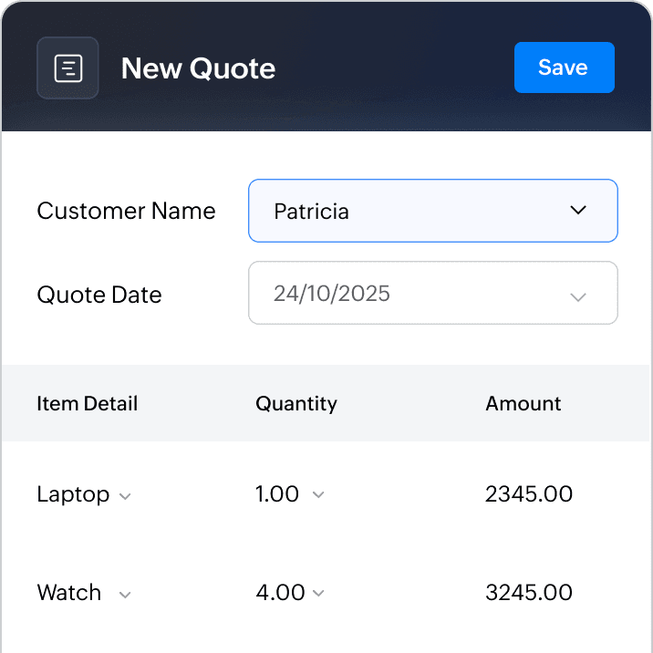 Use built-in quoting tools to manage multiple quotes, apply bulk actions, or filter by customer, amount, or status. Whether you're creating estimates for projects or quoting for individual sales, Zoho Books helps you stay organized.