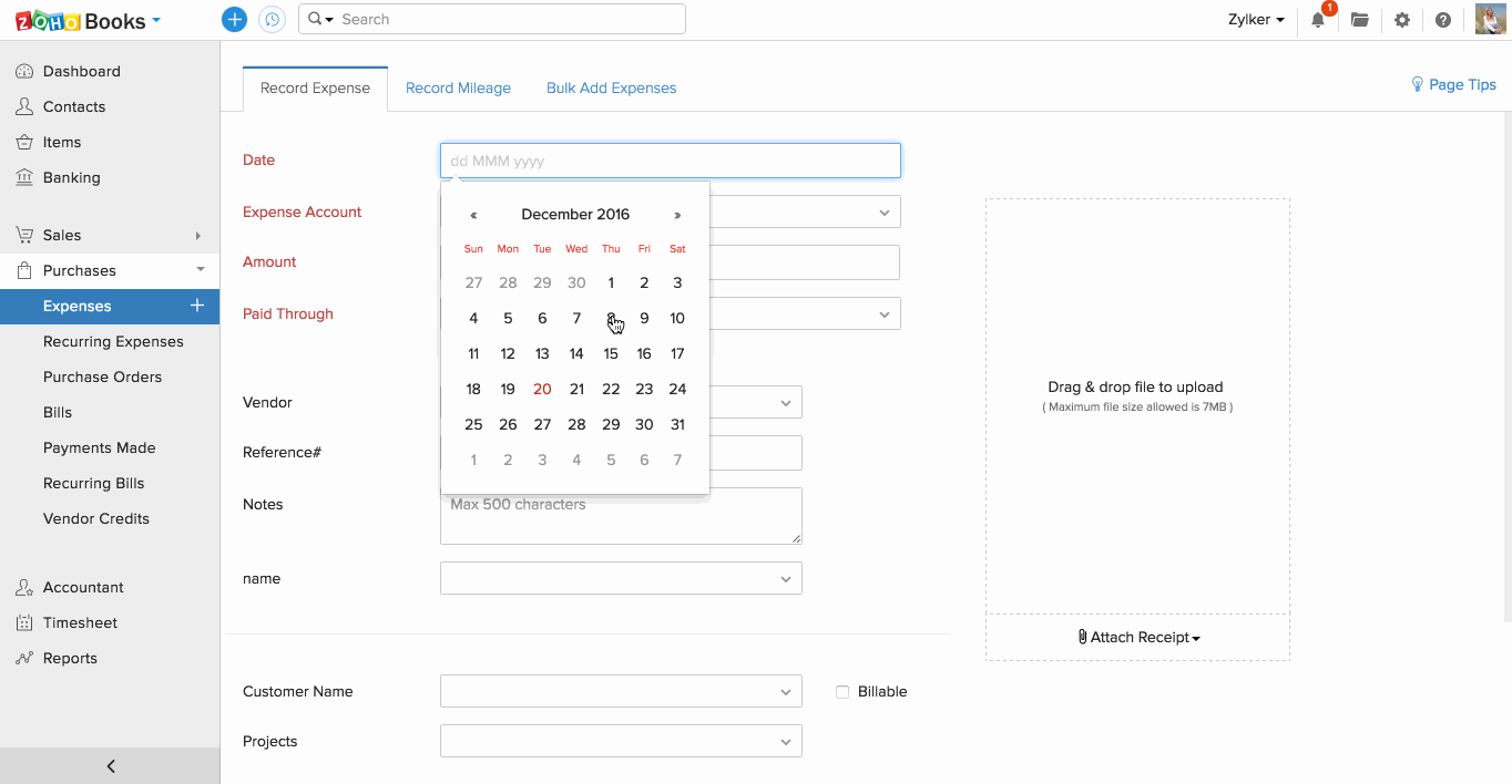 Pro Tip: Use the Zoho Books Android and iOS apps to click photos of receipts and upload them directly.