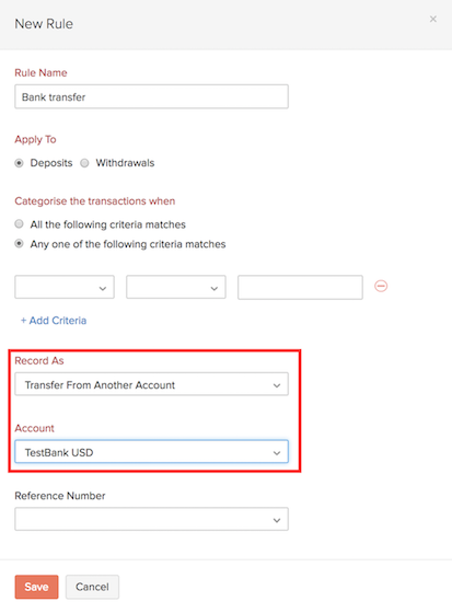 So, when you create a new transaction rule for a bank account, the currency of the account chosen under the Account dropdown must either have the same base currency as your organization or the same foreign currency of the account for which you are creating the transaction rule. You can learn more about transaction rules from our help document.