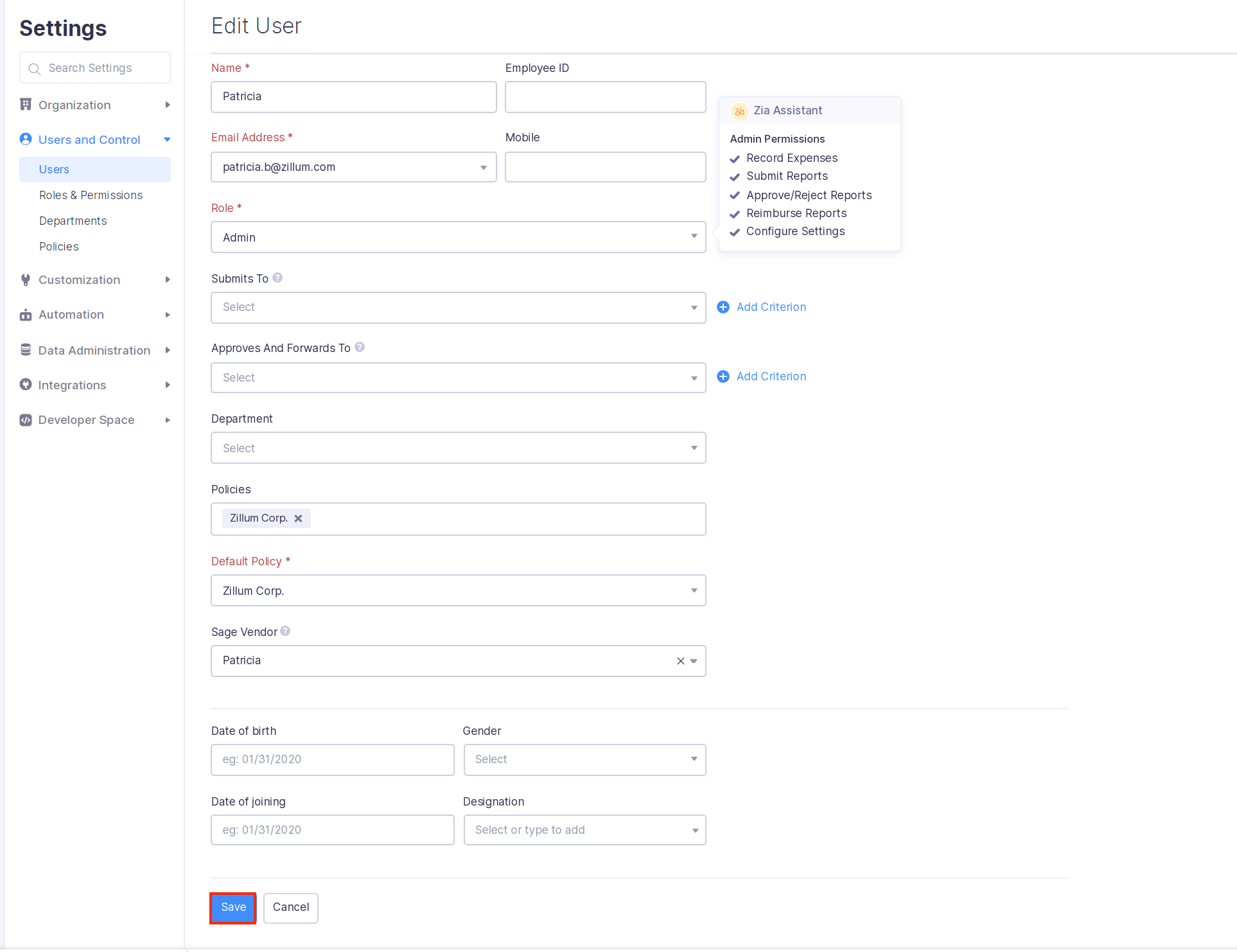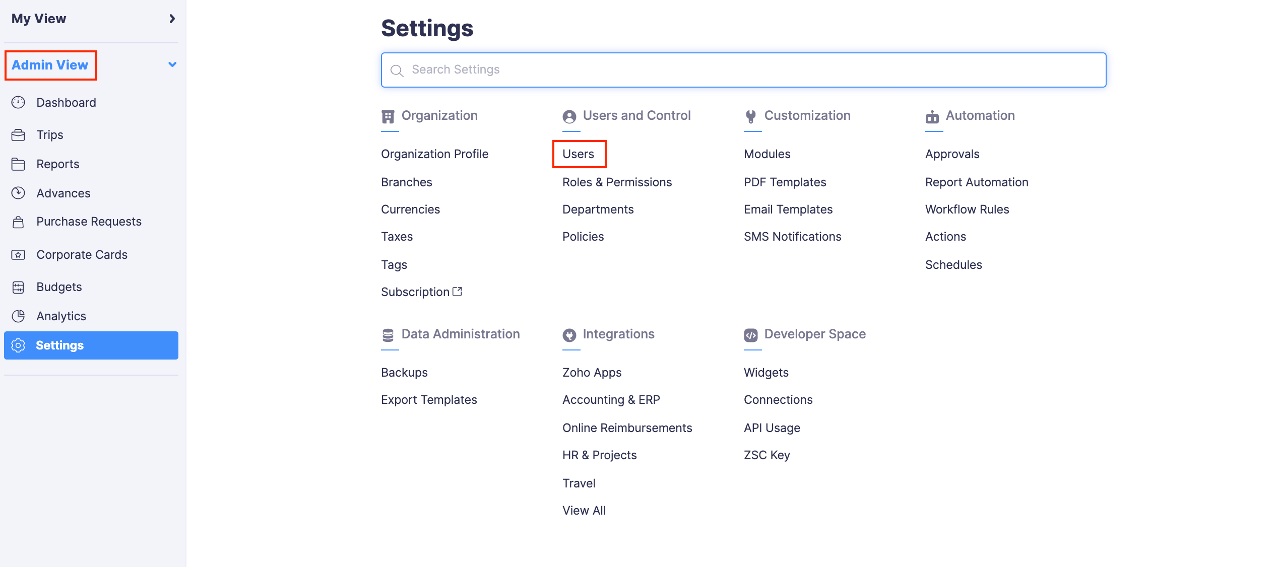 When you export reimbursable expenses from Zoho Expense, they will be exported as purchase invoices to Sage Accounting and the vendor of the bill will be the user who had created that expense. Hence, to fetch the vendors for creating purchase invoices in Sage Accounting, you will have to map the users in Zoho Expense with the vendors in Sage Accounting. To map the users: