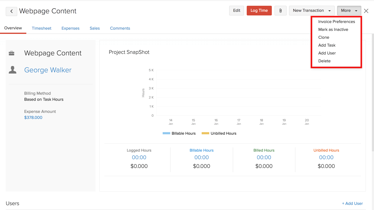 Mark as InactiveThis option allows you to make the project inactive. You can make the project active by selecting Mark as Active option on top of the project dashboard.