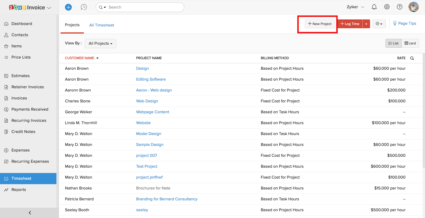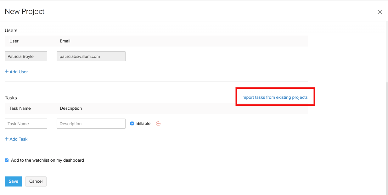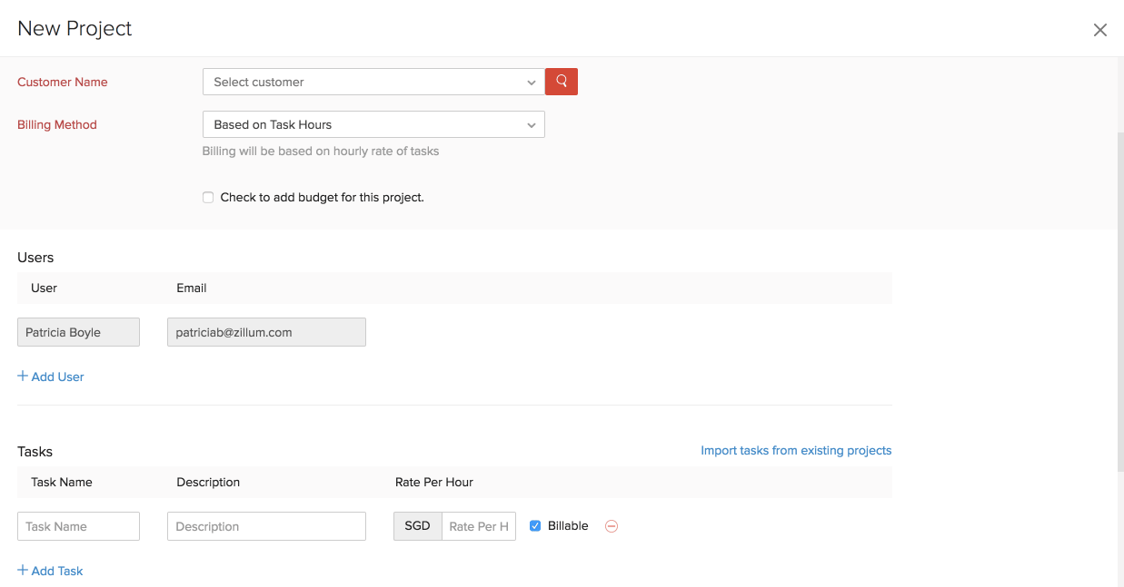 Projects, tasks and timesheet entries can be transported from an external source to Zoho Invoice with the help of the importing option. Tasks belonging to other projects within Zoho Invoice can also be imported.