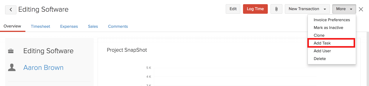 • Click More and select Add Task from the drop-down.