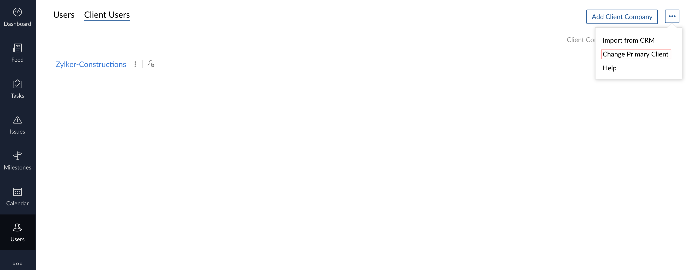 To make existing clients as primary clients in Zoho Projects: