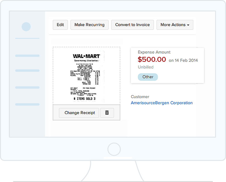 Manage your reimbursable expenses in less time than it takes to go through a stack of paper receipts. Snap pictures and upload them to Zoho Invoice.